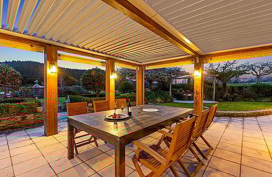 • Electric patio roof and a spa area